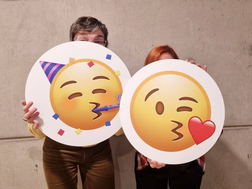 BU: An der Selfie-Fotowand am ökumenischen Kirchenstand geht es um Gefühle. Das Organisationsteam hat dazu runde Überraschungen vorbereitet. (dv/schu // Bild: ekma)